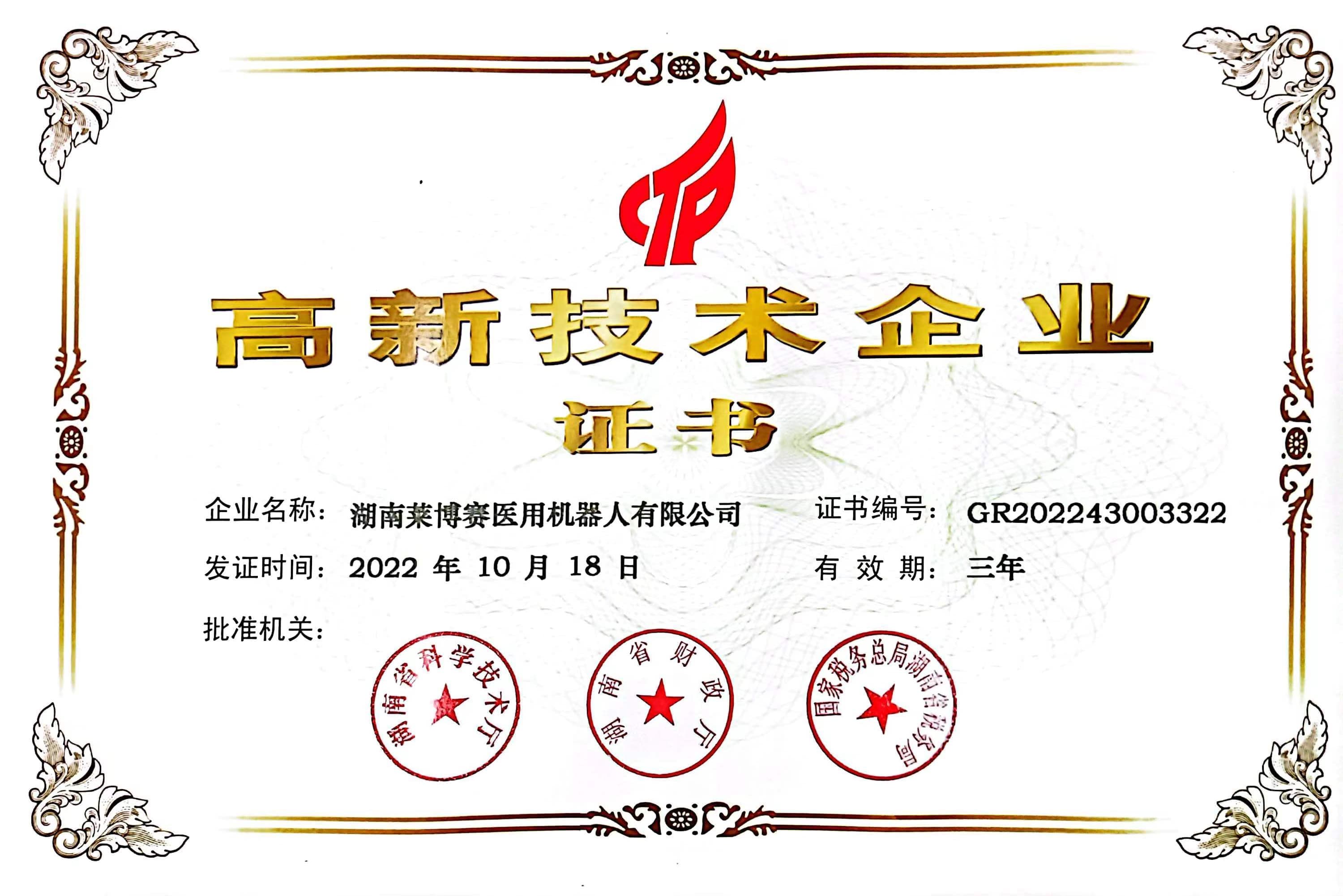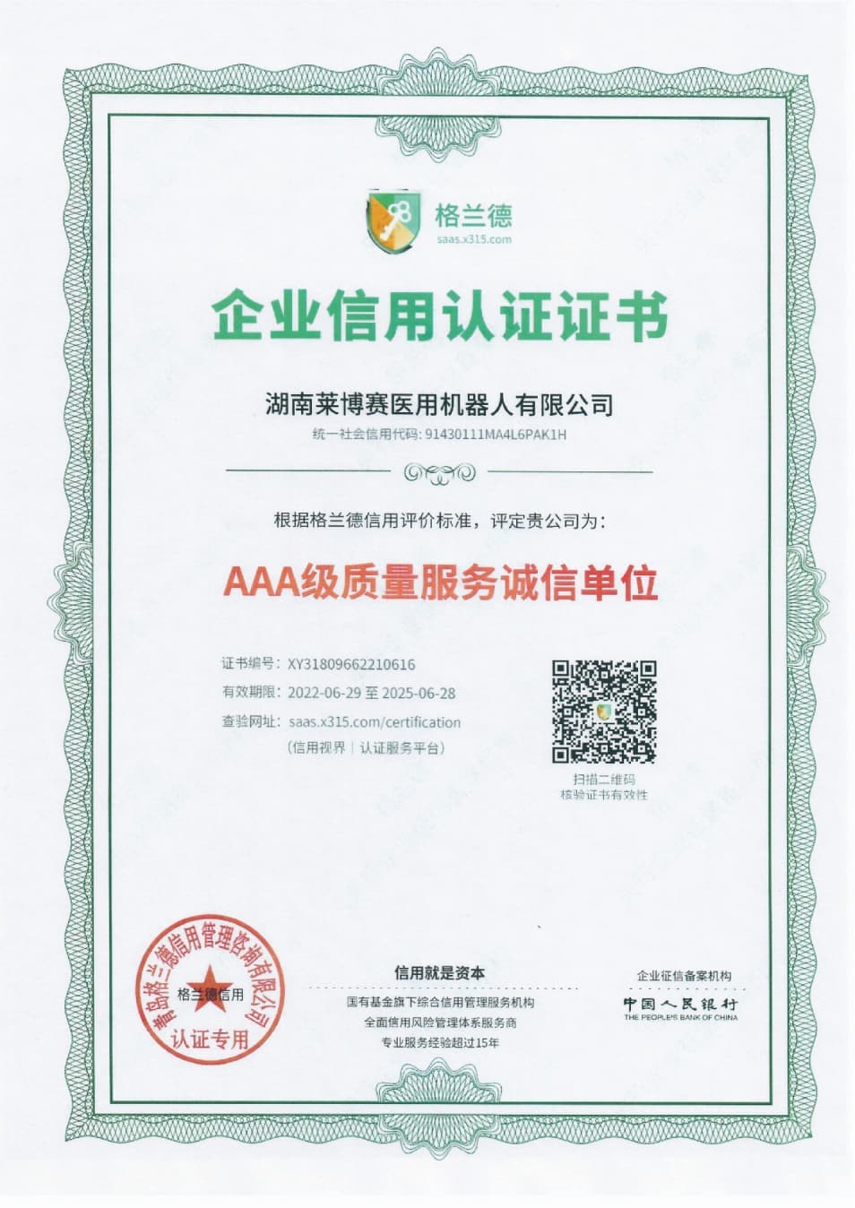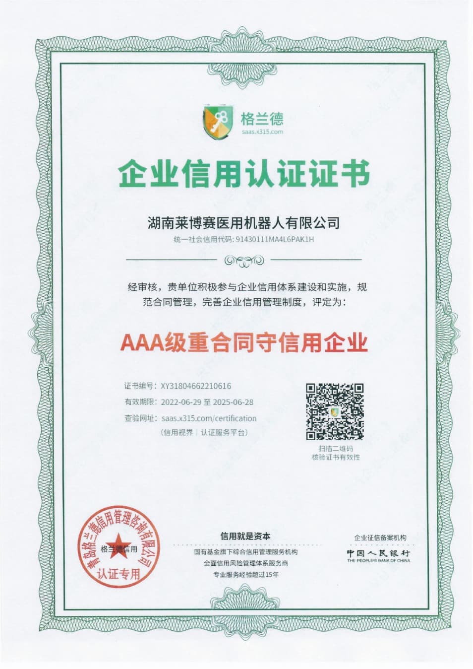 湖南莱博赛医用机器人有限公司信用认证企业 -