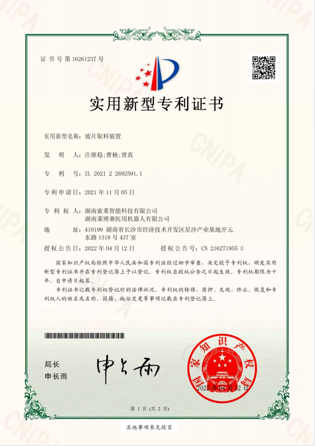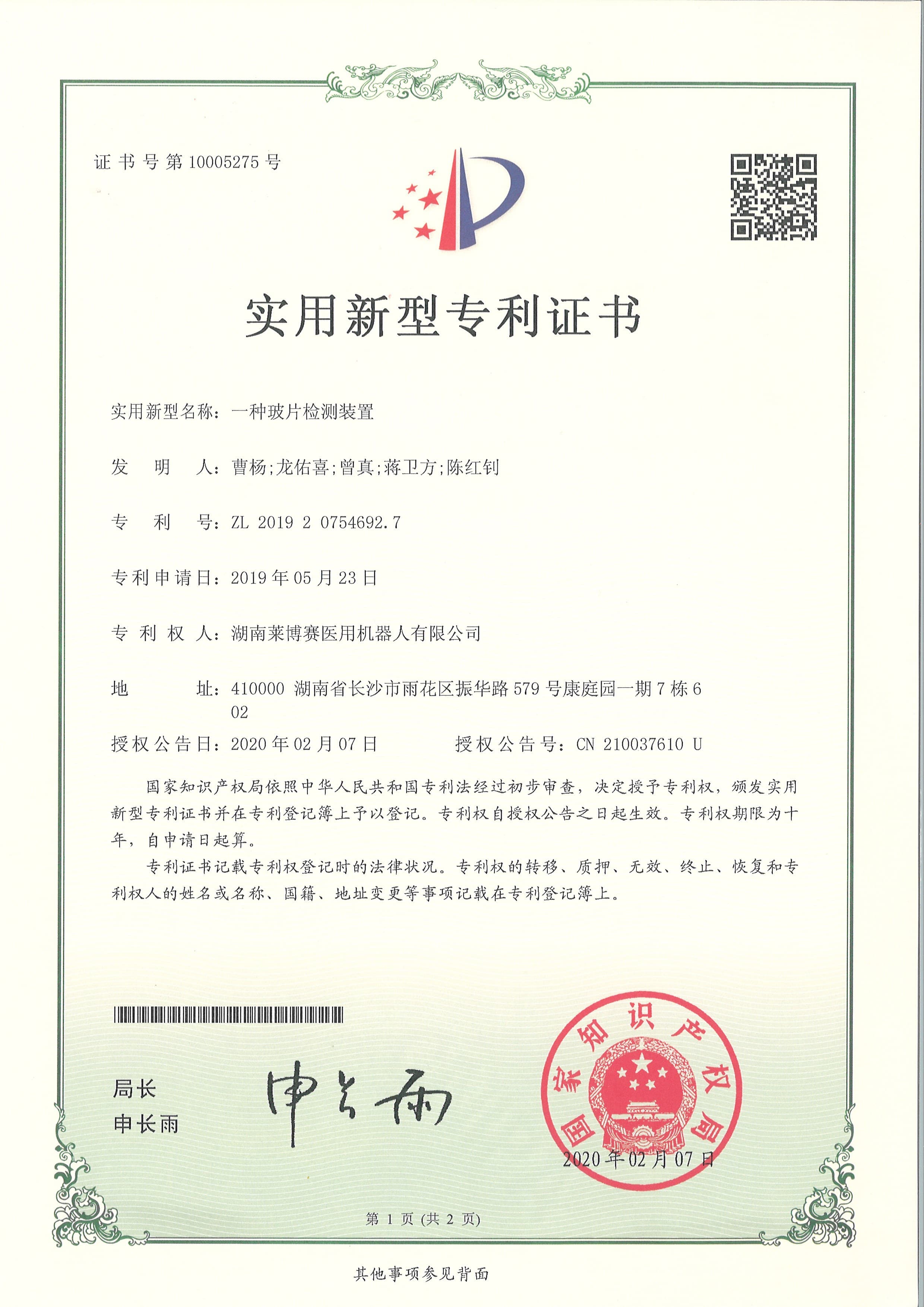 实用新型-一种标本涂匀载玻片装置-专利证书(签章) -