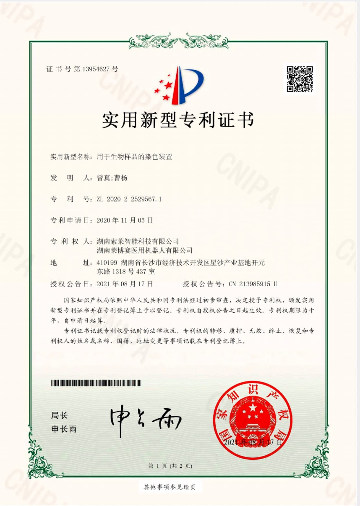 2021-实用新型-一种玻片标本批量染色装置-专利证书(签章) -