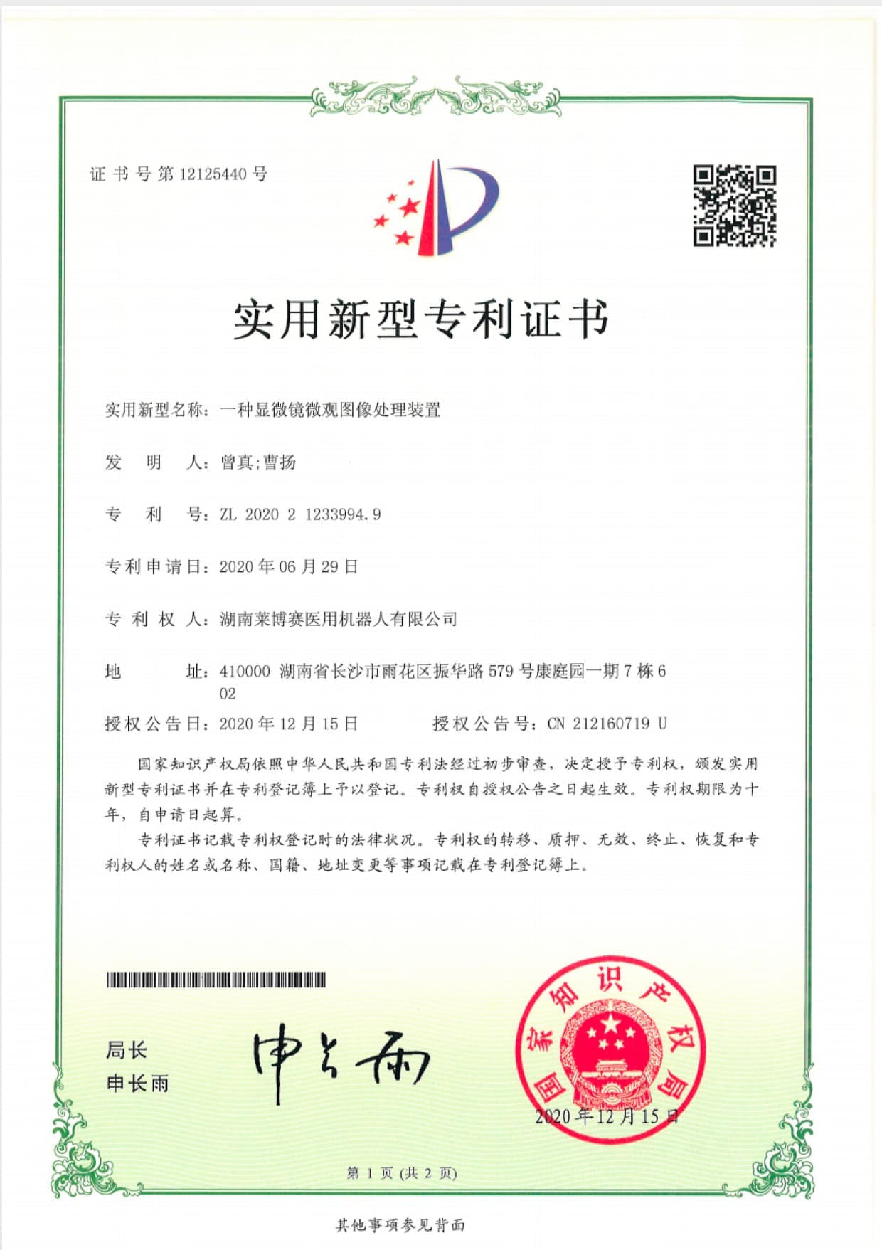 2020-实用新型一种目镜和显微镜-专利证书 -